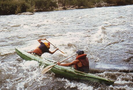 The white-waters as shown in photo 2, are much more turbulent and dangerous than sea-beach surf. The Platypus can be controlled in these waters with relative ease by paddle strokes- although Paul and I capsized many times. Because of its low drag the Platypus could be paddled uptream, so we learnt how use the vortexes in rapids to help us paddle upstream and surf stopper-waves. I think all this canoeing gave me an appreciation of the forces to be expected in a rough sea.