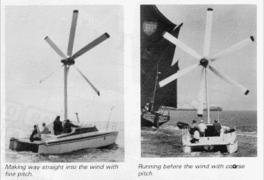 And finally amongst the AYRS members of the past publications, there was one of our Italian members, Guiseppe Gigliobianco, who in 1986 put this turbine on a cat, coupled to a vertical-axis propeller. He started off using cloth blades, but later switched to semi-rigid wing blades.