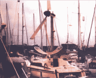 This boat is now owned by AYRS ex-Chairman Fred Ball, but it no longer has a wind turbine on it. Unfortunately, this is another boat whose photo does not scan very well.