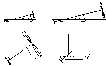 Next we have one of our Australian members, Josef Dusek - in 1984 he patented a device which looks like a helicopter rotor, where the blades flap up half way round, with the energy created by the flapping being used to work a pump. I don't think that he was intending to drive a boat with it.