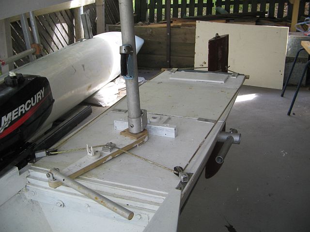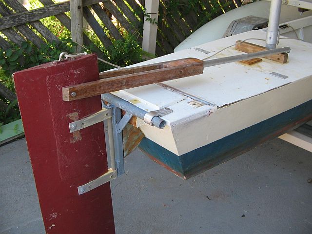 - The tiller of the transom mounted rudder interfered with the aft stubmast as shown in Photo 6. Remedies is shown in photo 7.