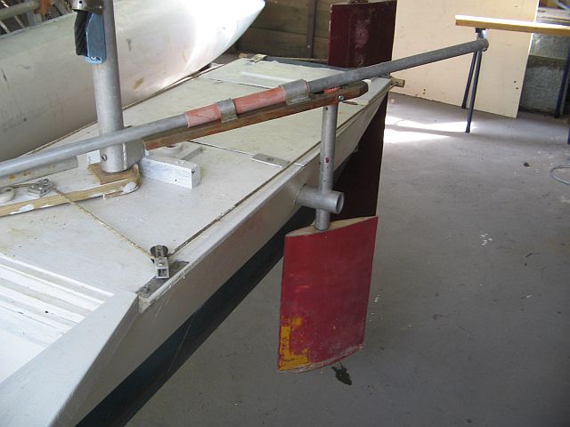 - The outboard mounted as in Photos 2-4, is well-placed for controlling it by a helmsman - but at top speethe outboard leg creates a lot of turbulence and water flow into the cockpit .