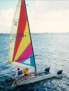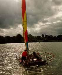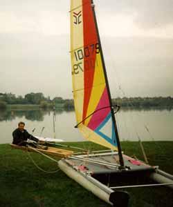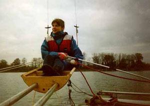 He is trying to find a "safer" alternative to trapezing, and is working on a sitting out device. This has progressed from a ladder to a wooden trough.