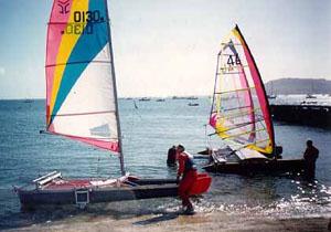 John Peperall of Middlesex (England) redesigned "Slewcat", a Catapult (inflatable catamaran) with slewing hulls - the leeward hull can move forwards.