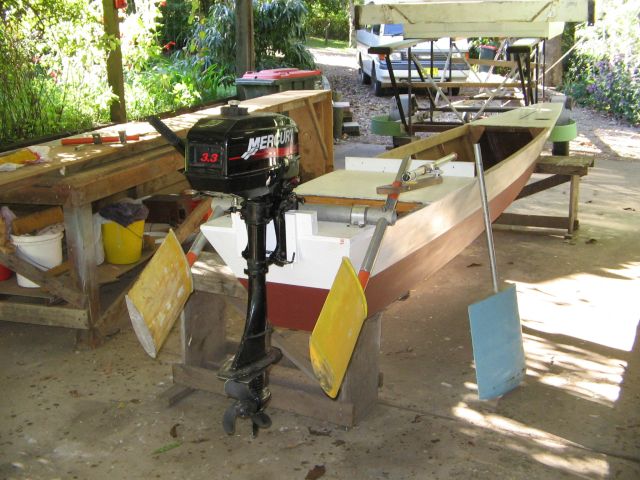 The following includes some photos of it on-land and during trial of the rudder system under motor power.