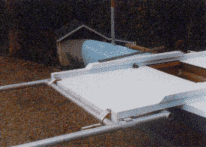 12 - Rigged for trailering. Note the end caps on the tubular outrigger. These are epoxy/fibreglass mouldings - it took me 2 months to make its plug and fibreglass mould.