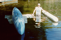 It was designed to allow a crew member to lift-out the water using strap-handles sown onto the bag-bottom. This operation was performed after the capsize when the hull was up-right, and was only partially successful because of difficulty in lifting the weight of water and suction between the bag and the cockpit floor.
