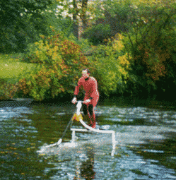 TRAMPOFOIL is a human-powered hydrofoil from Sweden